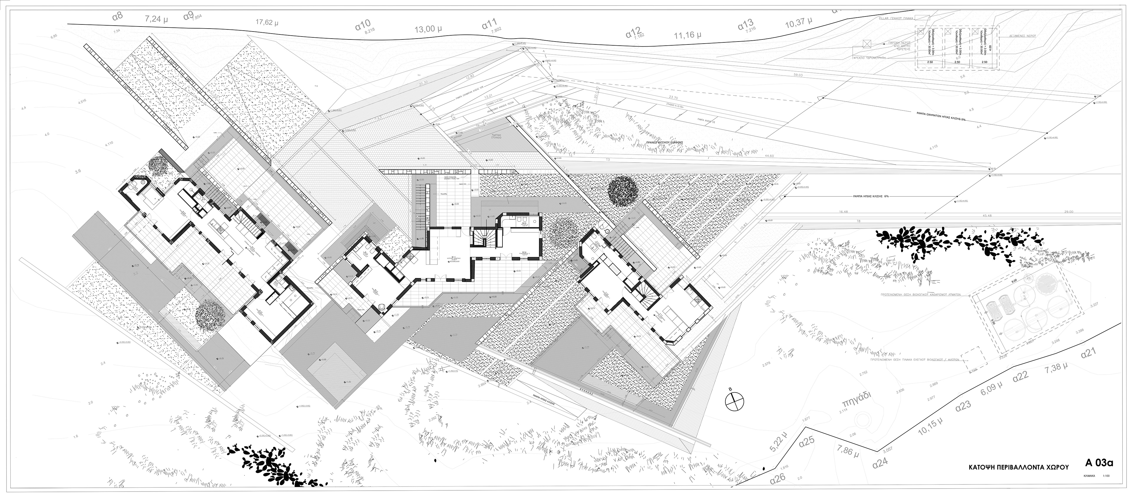 The study concerns the completion of three distinct vacation residences in an existing complex located at Vagia Beach in Serifos.
