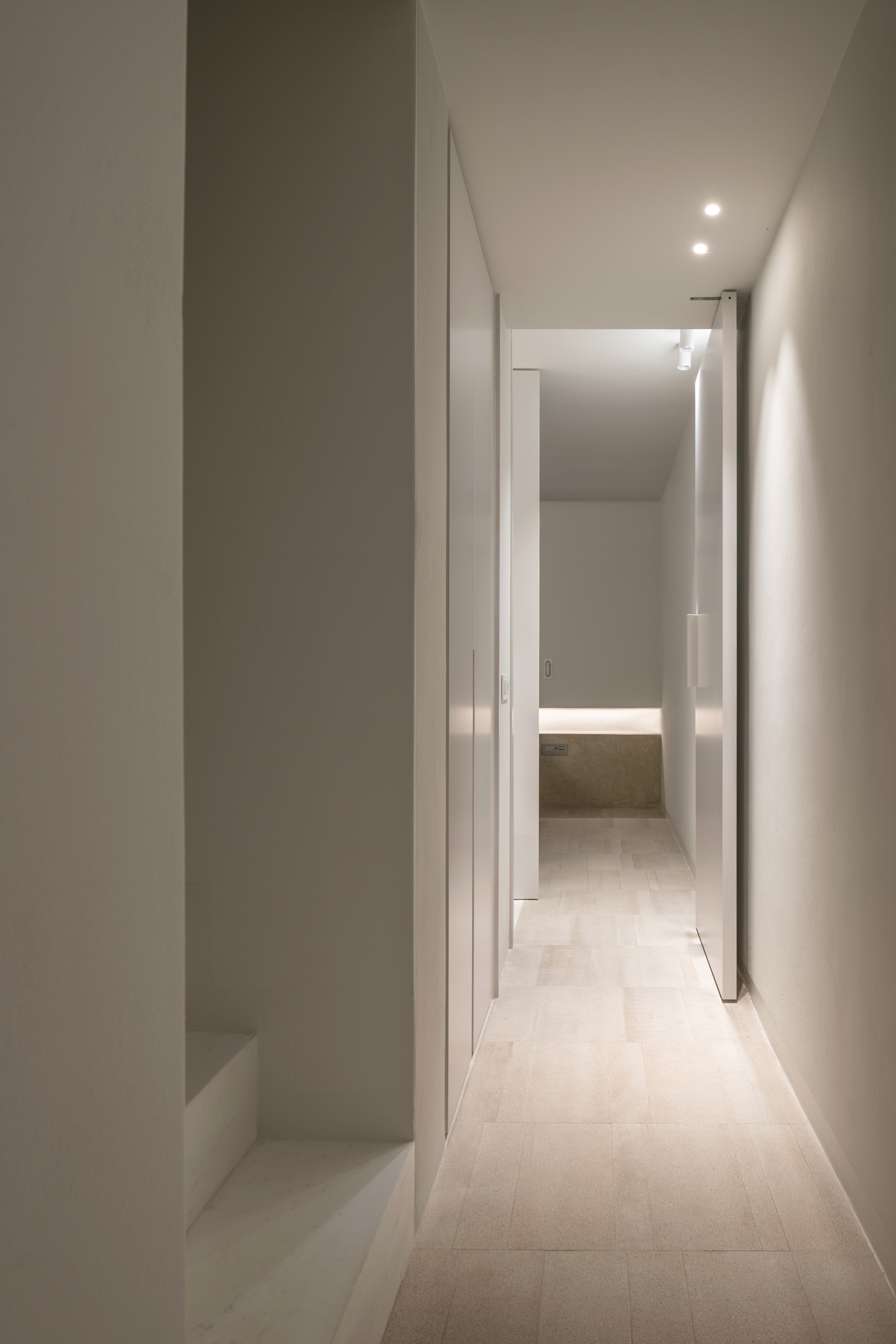 Filtering public movement towards the interior, this transitional space provides the residences with an additional outdoor place, an introspective patio that is vital for the users’ social life, which is a typical aspect of Cycladic architecture. Each residence thus acquires its own enclosure, with inner patios, intermediate spaces and open terraces aligned with the view.